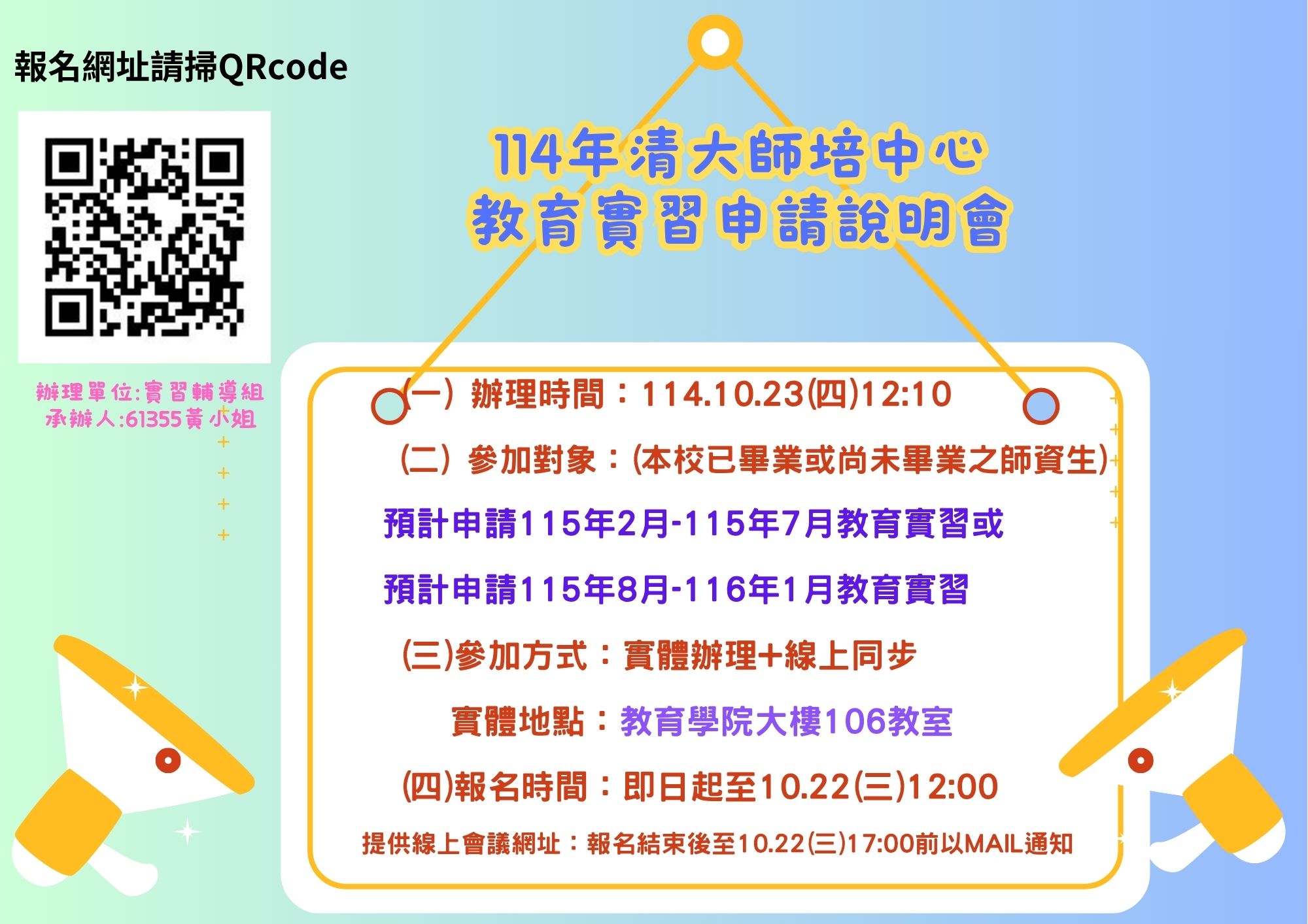 提醒:因本校實習學生身份相當多元,請有意申請者務必報名聆聽
